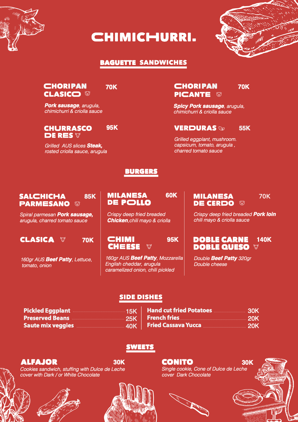 CHORIPAN, is an Argentine-style home-made sausage “chorizo” with “chimichurri” sauce in a baguette piece of bread. Our chorizo is a succulent grilled fresh sausage, seasoned in the traditional way that comes with our signature hand-chopped herby sauce, the “chimichurri”.